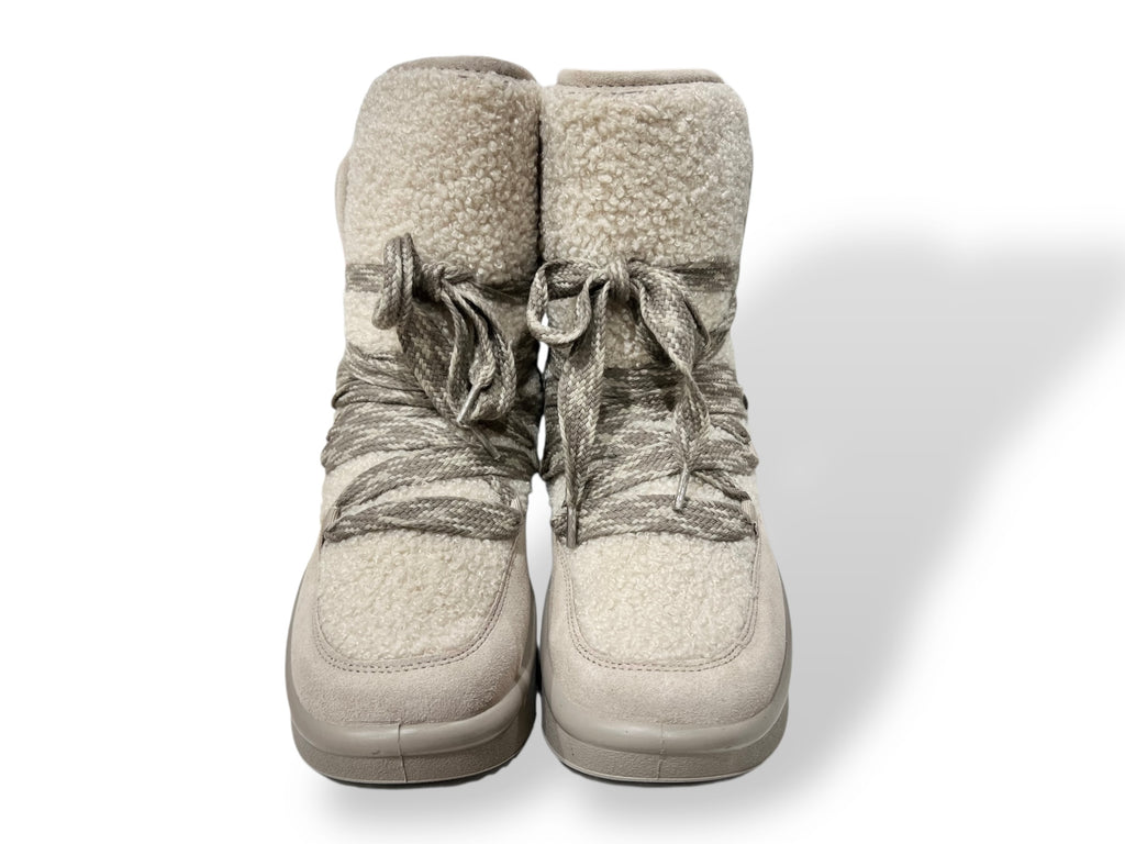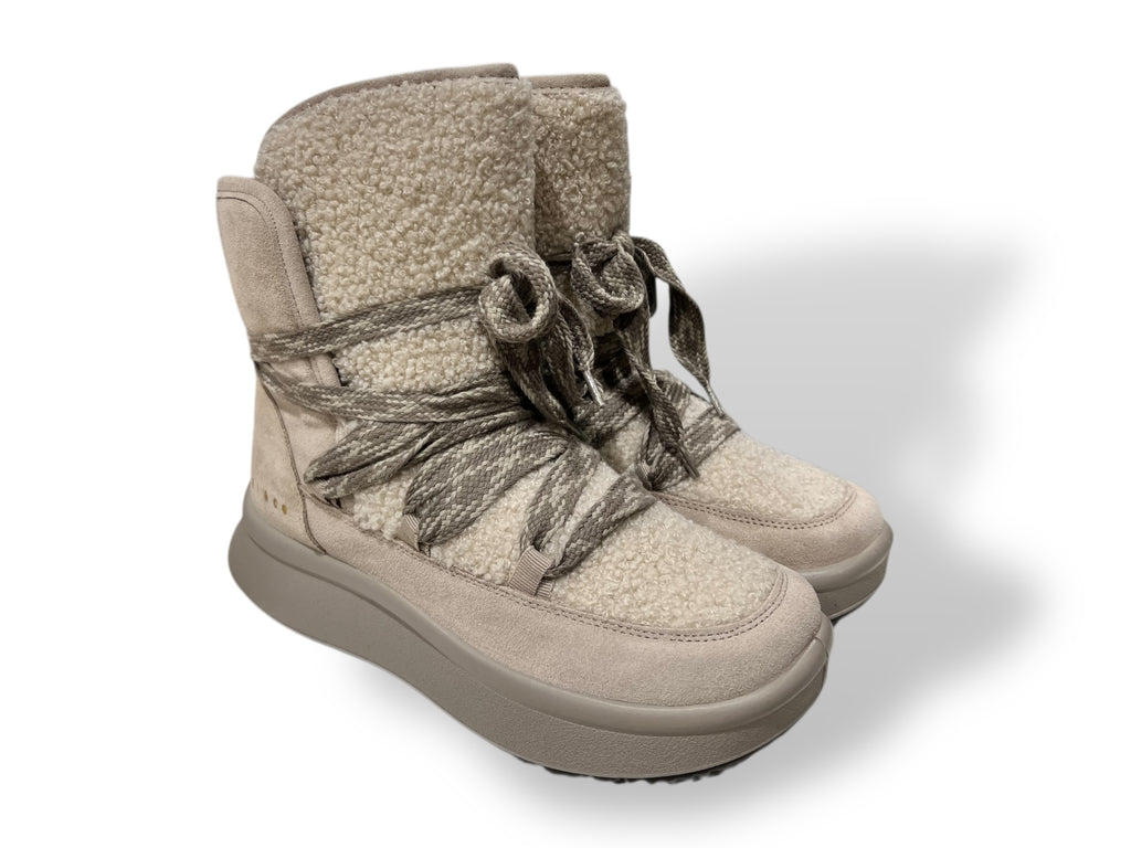 La suola alta e leggera garantisce stabilità e slancio, rendendo questi stivaletti ideali per uno stile metropolitano contemporaneo e accogliente